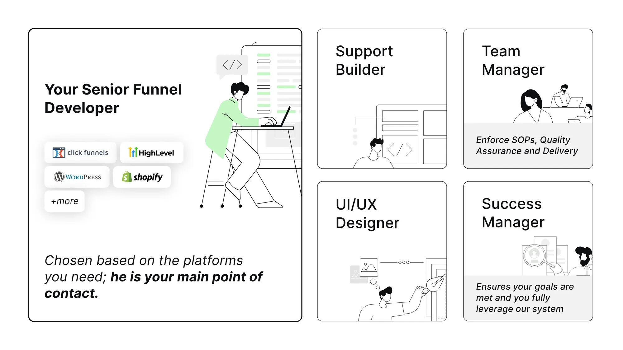 We don’t just set up tools we build a revenue engine for your business. From Meta Ads campaigns that bring in fresh leads daily, to Digitaloffer.ai funnels and automation that convert them into paying clients, we handle it all as your white-label fulfillment partner.